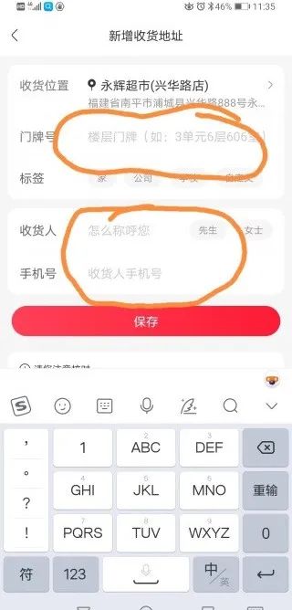填寫真實地址、 手機號,并點保存 13